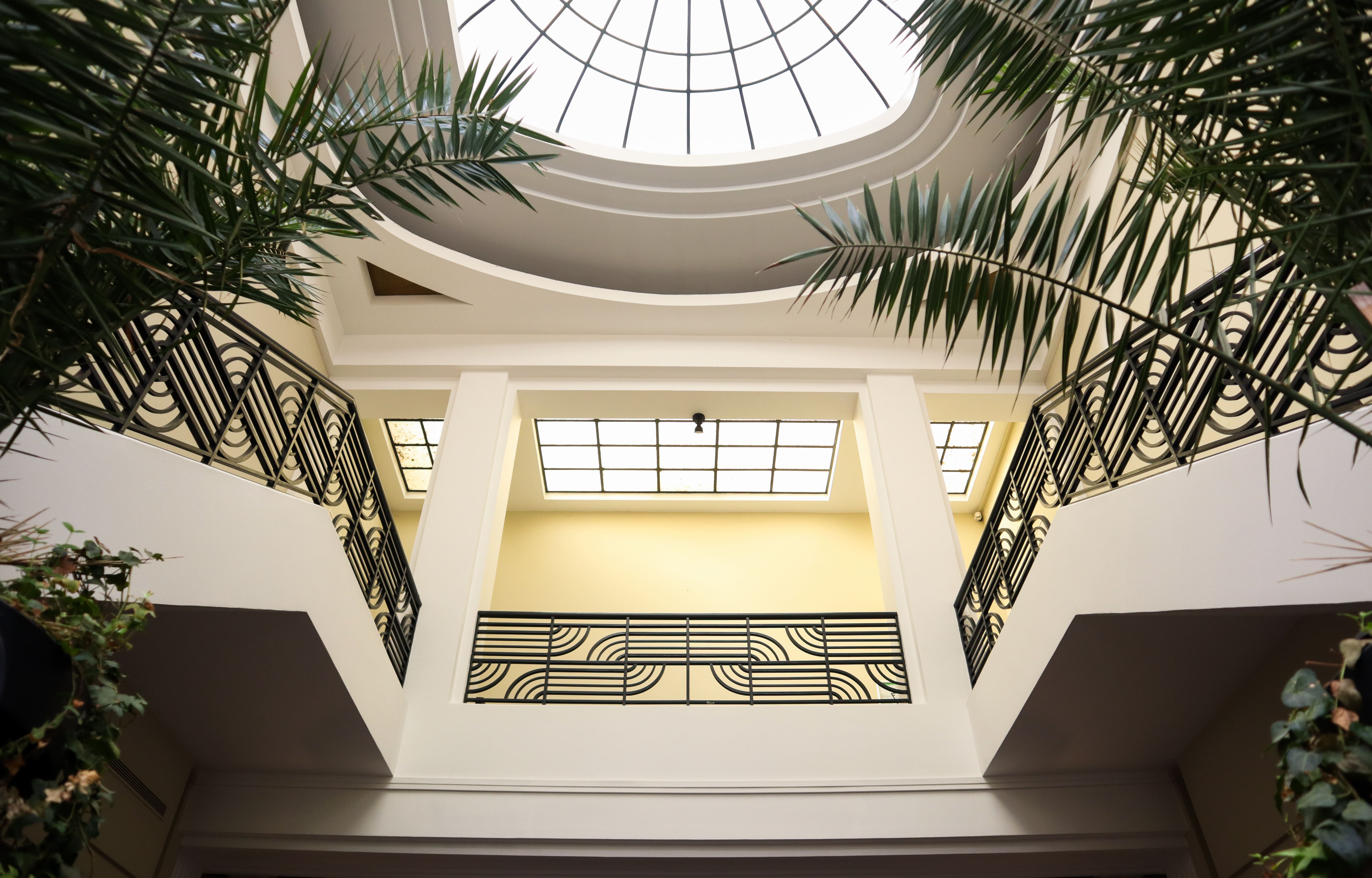 Cet atrium majestueux, en double hauteur, baigne dans une lumière naturelle exceptionnelle, offrant un cadre à la fois élégant et inspirant.